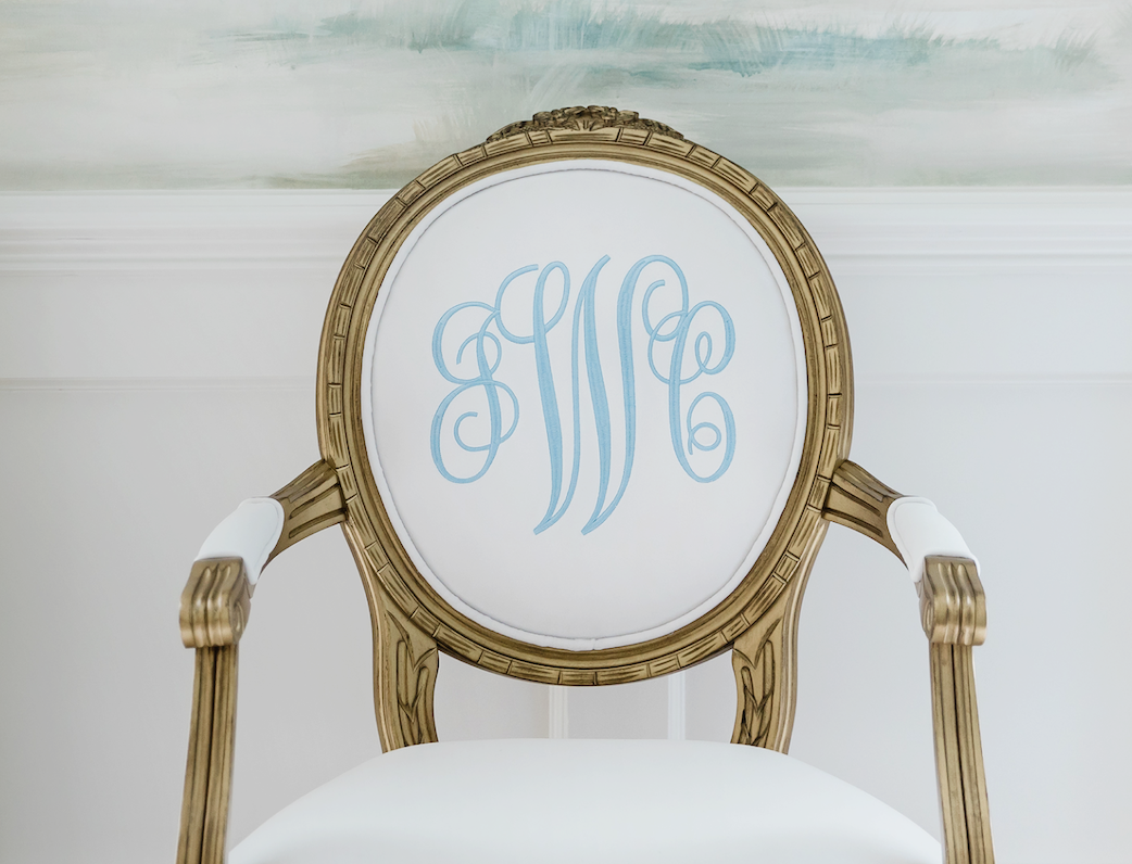A custom monogram on a beautiful chair makes it yours. Forever.