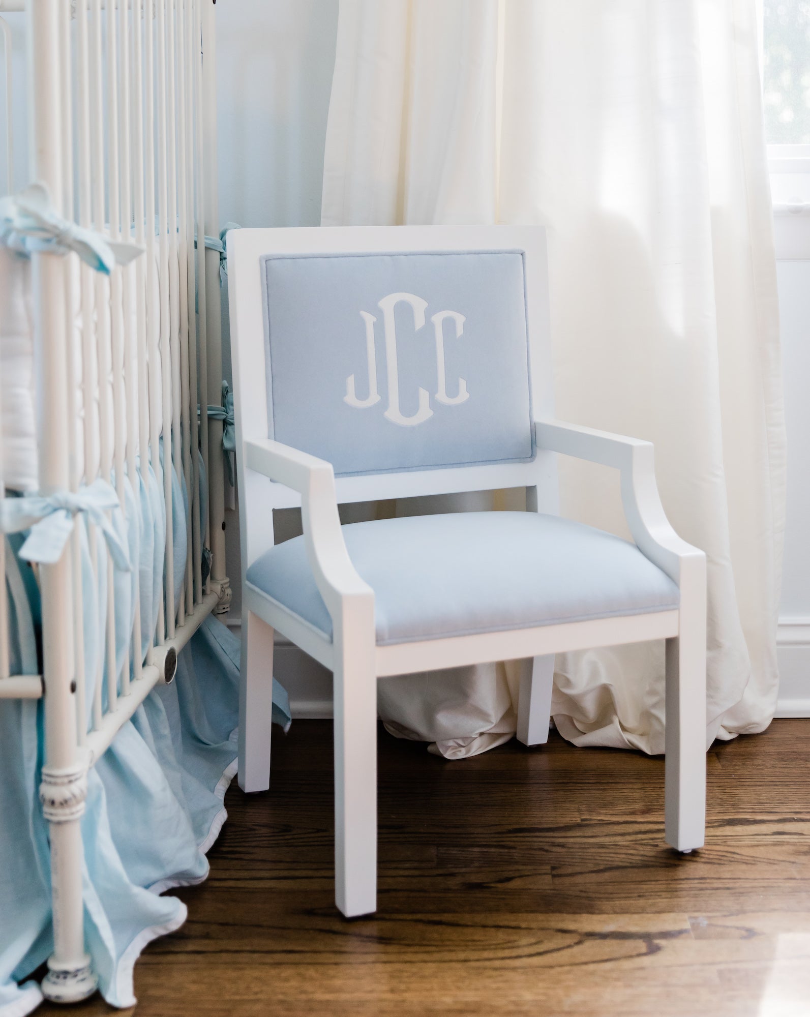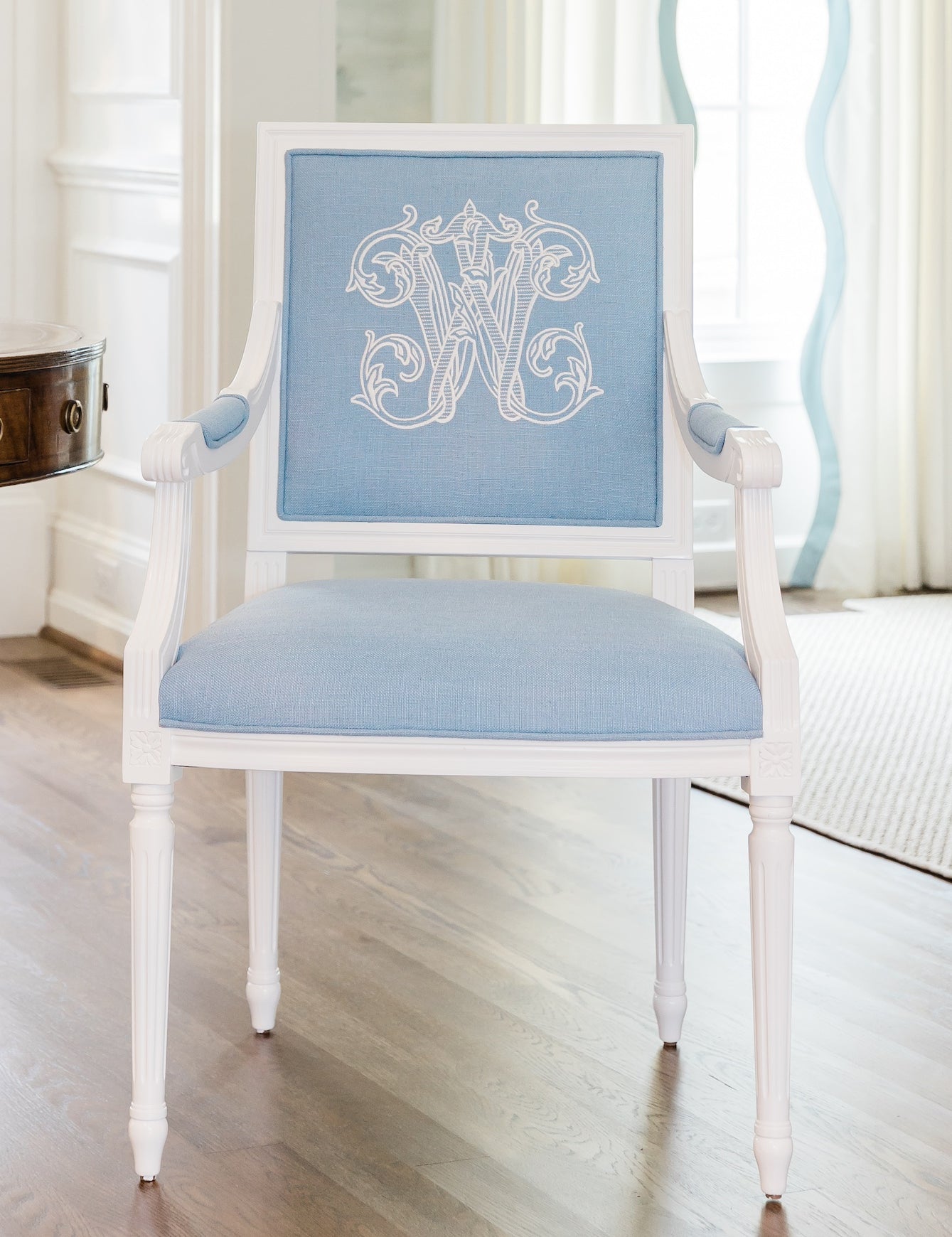 Each of our monogrammed chairs is not only a one-of-a-kind finishing touch to an elevated space, it’s a celebration of what makes your family’s story unique, bringing a sense of fresh nostalgia into your modern life. Explore all the design possibilities by customizing your chair below.