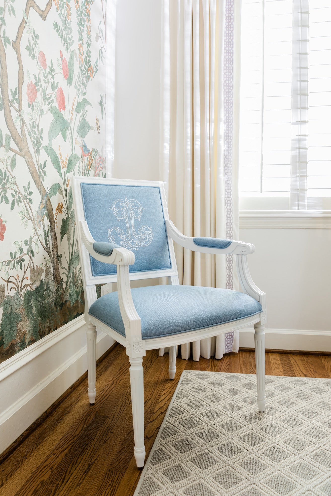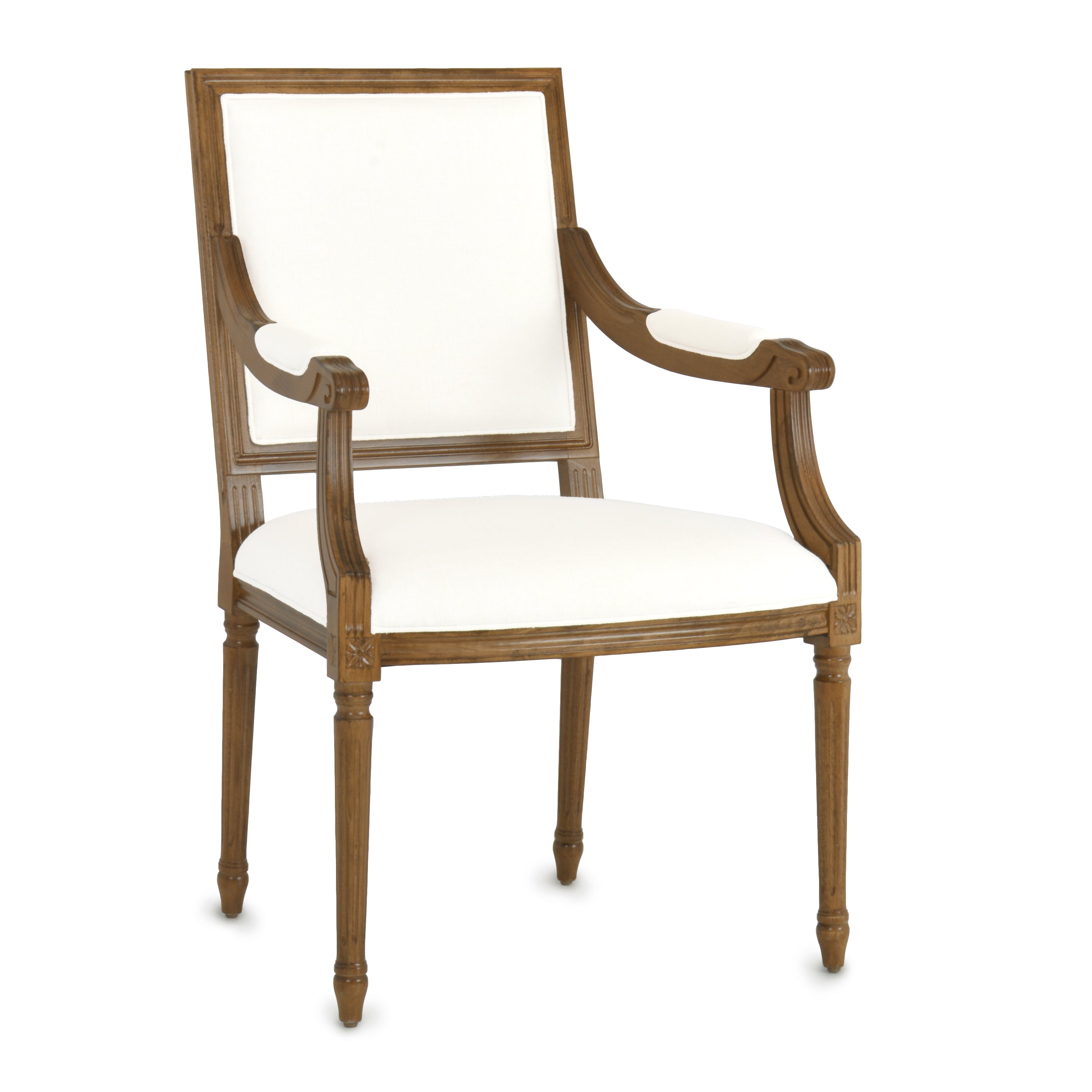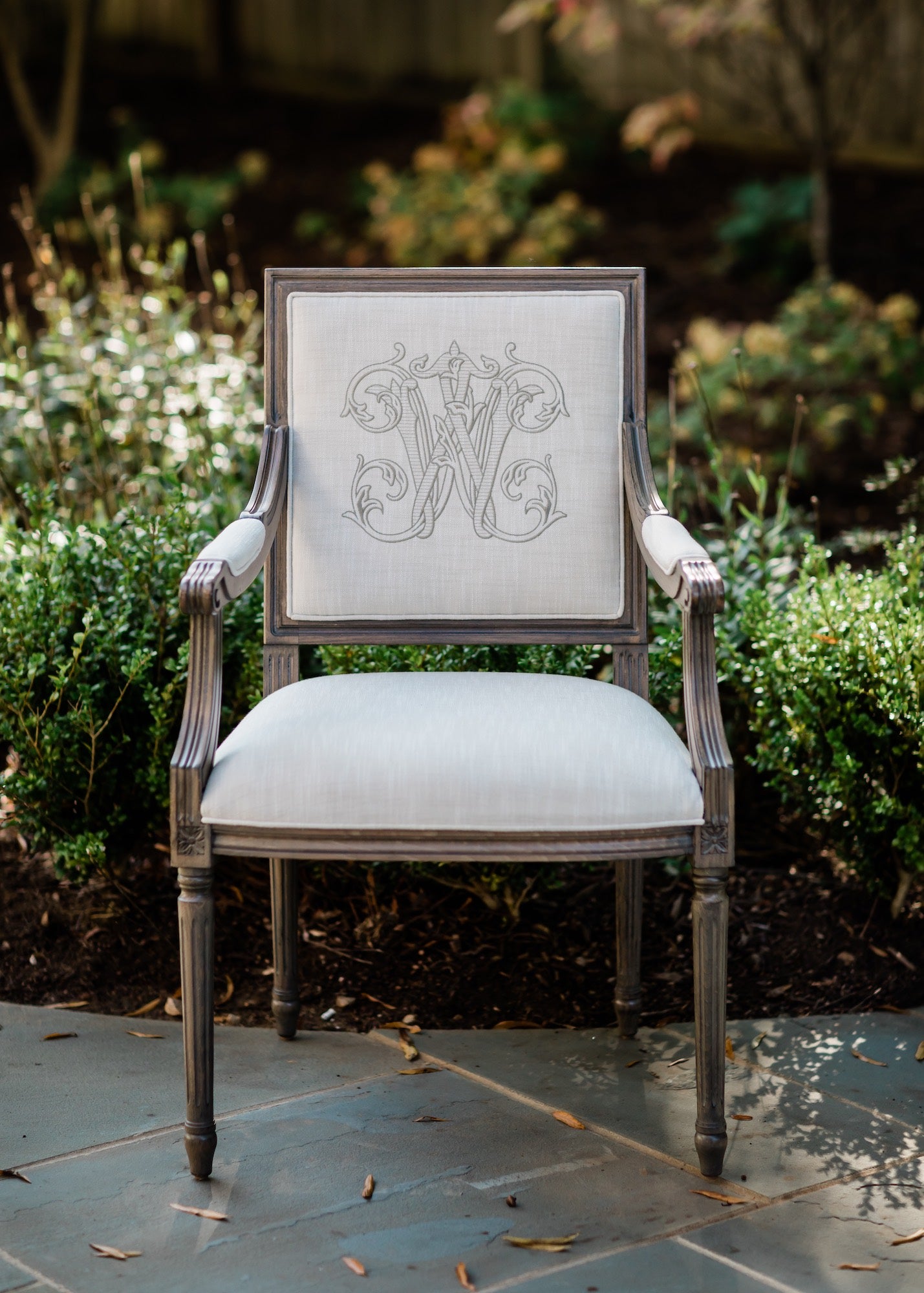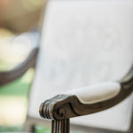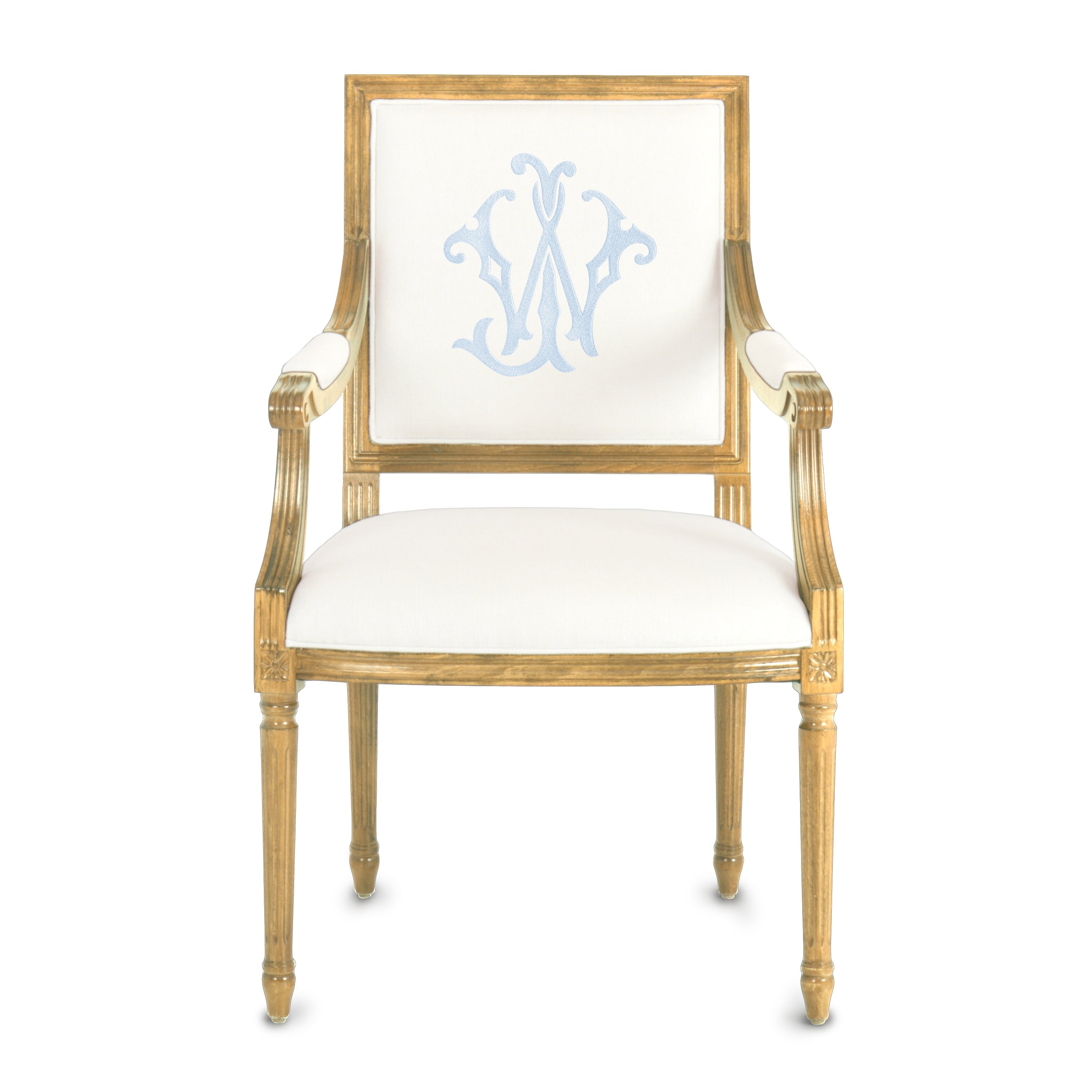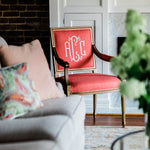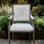 The Baker Arm is regal yet fresh and current. There is a sophistication to the square back with its elegant geometry and proportional clean lines. All merge perfectly to frame a custom monogram on the front or back of the chair. The Baker Arm will perform beautifully in literally every room of your home.